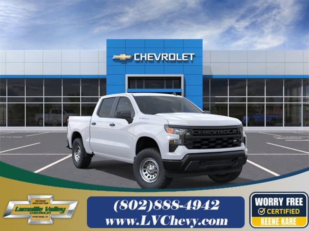 Lamoille Valley Chevrolet is proud to present you with another True Market Priced Vehicle. This 2026 Chevrolet Silverado 1500 WT is loaded with the following Factory Options: 10-Speed Automatic, 4WD, and Jet Black Vinyl Preferred Equipment Group 1WT (3.5 Monochromatic Display Driver Info Center, 4-Way Manual Driver Seat Adjuster, Black (Semi-Gloss) Front Bumper, Black (Semi-Gloss) Rear Bumper, Black Manual Outside Mirrors, Bluetooth® For Phone, Electronic Cruise Control, Front Frame-Mounted Black Recovery Hooks, HD Rear Vision Camera, Inside Rear-View Mirror w/Tilt, Locking Tailgate, Manual Tailgate Function w/No EZ Lift, Manual Tilt Wheel Steering Column, OnStar Services Capable, Power Front Windows w/Driver Express Up/Down, Power Front Windows w/Passenger Express Down, Power Rear Windows w/Express Down, Rear 60/40 Folding Bench Seat (Folds Up), Remote Keyless Entry, Rubberized-Vinyl Floor Covering, SiriusXM Delete, Solar Absorbing Tinted Glass, Standard Tailgate, Teen Driver, Tire Pressure Monitoring System, and Wi-Fi Hot Spot Capable), Snow Plow Prep Package (220 Amp Alternator and Heavy-Duty Air Filter), Standard Suspension Package, Trailering Package (Hitch Guidance), WT Convenience Package (Deep-Tinted Glass, Electric Rear-Window Defogger, and Heated Power-Adjustable Outside Mirrors), WT Value Package, 10-Speed Automatic, 4WD, Jet Black Vinyl, 4-Wheel Disc Brakes, 40/20/40 Front Split-Bench Seat, 6 Speakers, 6-Speaker Audio System, ABS brakes, Air Conditioning, Apple CarPlay/Android Auto, Auto High-beam Headlights, Auto-Locking Rear Differential, Automatic Emergency Braking, Auxiliary External Transmission Oil Cooler, Brake assist, Compass, Delay-off headlights, Driver door bin, Dual front impact airbags, Dual front side impact airbags, Electronic Stability Control, Emergency communication system: OnStar, External Engine Oil Cooler, Following Distance Indicator, Forward Collision Alert, Front anti-roll bar, Front Center Armrest w/Storage, Front License Plate Kit, Front Pedestrian Braking, Front reading lights, Front wheel independent suspension, Fully automatic headlights, Illuminated entry, Integrated Trailer Brake Controller, IntelliBeam Automatic High Beam On/Off, Lane Keep Assist w/Lane Departure Warning, Low tire pressure warning, Occupant sensing airbag, Outside temperature display, Overhead airbag, Overhead console, Panic alarm, Passenger door bin, Passenger vanity mirror, Power steering, Power windows, Premium audio system: Chevrolet Infotainment 3, Radio data system, Radio: Chevrolet Infotainment 3 System, Rear reading lights, Rear step bumper, Remote keyless entry, Speed control, Speed-sensing steering, Split folding rear seat, Tachometer, Tilt steering wheel, Traction control, Trip computer, Upfitter Switch Kit (5), Variably intermittent wipers, Vinyl Seat Trim, Voltmeter, and Wheels: 17 x 8 Ultra Silver Painted Steel!!