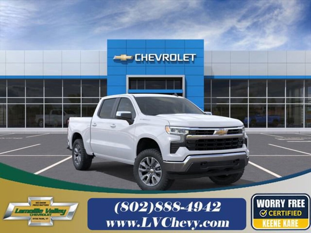 Summit White 2026 Chevrolet Silverado 1500 LT 4WD 8-Speed Automatic 2.7L I4 Turbocharged DOHC 16V LEV3-SULEV30 310hp 8-Speed Automatic, 4WD, Jet Black Cloth.Lamoille Valley Chevrolet is proud to present you with another True Market Priced Vehicle. This 2026 Chevrolet Silverado 1500 LT is loaded with the following Factory Options: 8-Speed Automatic, 4WD, and Jet Black Cloth Convenience Package (10-Way Power Driver Seat with Lumbar, 120-Volt Bed Mounted Power Outlet, 120-Volt Interior Power Outlet, Dual Rear USB Ports (charge Only), Dual-Zone Automatic Climate Control, Heated Driver and Front Outboard Passenger Seats, Heated Steering Wheel, Keyless Open and Start, LED Cargo Area Lighting, Manual Tilt/Telescoping Steering Column, and Wrapped Steering Wheel), High Capacity Suspension Package, Standard Suspension Package, Trailering Package (Hitch Guidance), 8-Speed Automatic, 4WD, Jet Black Cloth, 12.3 Multicolor Reconfigurable Digital Display, 3.42 Rear Axle Ratio, 4-Wheel Disc Brakes, 40/20/40 Front Split-Bench Seat, 6 Speakers, 6-Speaker Audio System, ABS brakes, Air Conditioning, All-Star Edition, Alloy wheels, AM/FM radio: SiriusXM with 360L, Apple CarPlay/Android Auto, Auto High-beam Headlights, Auto-Locking Rear Differential, Automatic Emergency Braking, Automatic temperature control, Bluetooth® For Phone, Brake assist, Bumpers: chrome, Chrome Mirror Caps, Cloth Seat Trim, Color-Keyed Carpeting Floor Covering, Compass, Deep-Tinted Glass, Delay-off headlights, Driver door bin, Driver vanity mirror, Dual front impact airbags, Dual front side impact airbags, Electric Rear-Window Defogger, Electronic Cruise Control, Electronic Stability Control, Emergency communication system: OnStar, Following Distance Indicator, Forward Collision Alert, Front anti-roll bar, Front Center Armrest w/Storage, Front dual zone A/C, Front Frame-Mounted Black Recovery Hooks, Front License Plate Kit, Front Pedestrian Braking, Front reading lights, Front wheel independent suspension, Fully automatic headlights, HD Rear Vision Camera, Heated door mirrors, Heated front seats, Heated steering wheel, Illuminated entry, Integrated Trailer Brake Controller, IntelliBeam Automatic High Beam on/Off, Lane Keep Assist with Lane Departure Warning, Low tire pressure warning, Occupant sensing airbag, OnStar Services Capable, Outside temperature display, Overhead airbag, Overhead console, Panic alarm, Passenger door bin, Passenger vanity mirror, Power door mirrors, Power driver seat, Power Front Windows with Driver Express Up/Down, Power Front Windows with Passenger Express Down, Power Rear Windows with Express Down, Power steering, Power windows, Premium audio system: Chevrolet Infotainment 3 Premium, Radio data system, Radio: Chevrolet Infotainment 3 Premium System, Rear 60/40 Folding Bench Seat (folds Up), Rear reading lights, Rear step bumper, Rear window defroster, Remote keyless entry, Remote Vehicle Starter System, Security system, SiriusXM with 360L Trial Subscription, Speed control, Speed-sensing steering, Split folding rear seat, Steering Wheel Audio Controls, Steering wheel mounted audio controls, Tachometer, Teen Driver, Telescoping steering wheel, Theft Deterrent System (unauthorized Entry), Tilt steering wheel, Tire Pressure Monitoring System, Traction control, Trip computer, Variably intermittent wipers, Voltmeter, Wheels: 18 x 8.5 Bright Silver Painted Aluminum, Wheels: 20 x 9 Painted Aluminum, and Wi-Fi Hot Spot Capable!! Recent Arrival!At Lamoille Valley Chevrolet, we're more than just a car dealership in Hyde Park VT. We're also members of the greater Stowe, Burlington MA and Barre VT communities, who work and live here just like you, and we want only what's best for our neighbors. We strive to support community initiatives and events, and we're committed to delivering the best customer service around, from new Chevrolet sales, to used vehicles, to finance and service. We provide the best of the best to all our customers.<