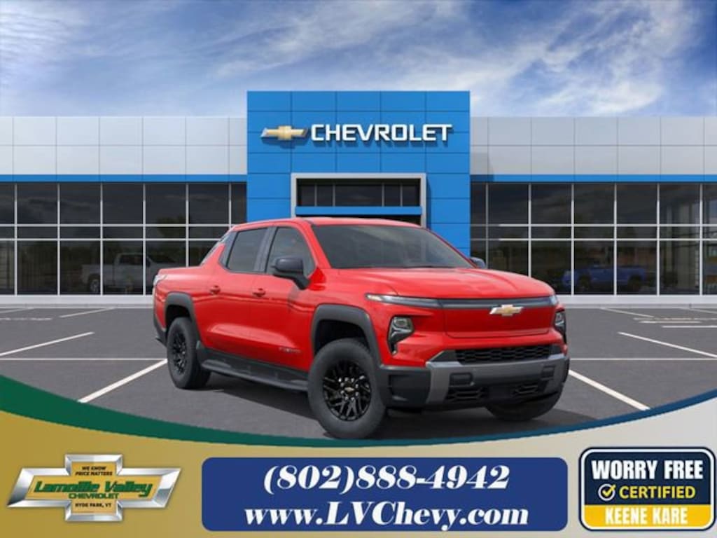 Lamoille Valley Chevrolet is proud to present you with another True Market Priced Vehicle. This 2026 Chevrolet Silverado EV LT is loaded with the following Factory Options: Front License Plate Bracket Mounting Package, Preferred Equipment Group 3LT (Extended Range Battery Pack, Front Passenger 4-Way Manual Seat Adjuster, and LED Reflective Windshield Collision Alert), 11.63 Axle Ratio, 4-Wheel Disc Brakes, 4-Wheel Independent Suspension, 6 Speakers, 6-Speaker Audio System Feature, 8-Way Power Driver Seat Adjuster, ABS brakes, Air Conditioning, Alloy wheels, AM/FM radio: SiriusXM with 360L, Auto High-beam Headlights, Auto-dimming Rear-View mirror, Automatic temperature control, Brake assist, Delay-off headlights, Driver 2-Way Power Lumbar Seat Adjuster, Driver door bin, Driver vanity mirror, Dual front impact airbags, Dual front side impact airbags, Electronic Stability Control, Emergency communication system: OnStar, Evotex Seat Trim, Four wheel independent suspension, Front anti-roll bar, Front Bucket Seats, Front Center Armrest w/Storage, Front dual zone A/C, Front reading lights, Fully automatic headlights, Garage door transmitter, Heated door mirrors, Heated Front Driver and Passenger Seats, Heated front seats, Heated steering wheel, Low tire pressure warning, Navigation System, Occupant sensing airbag, Outside temperature display, Overhead airbag, Overhead console, Panic alarm, Passenger door bin, Passenger vanity mirror, Power door mirrors, Power driver seat, Power steering, Power windows, Radio data system, Radio: 17.7 Diagonal Advanced Color LCD Display, Rain sensing wipers, Rear reading lights, Rear step bumper, Rear window defroster, Remote keyless entry, Security system, SiriusXM with 360L Trial Subscription, Speed control, Speed-sensing steering, Split folding rear seat, Sport steering wheel, Steering wheel mounted audio controls, Telescoping steering wheel, Tilt steering wheel, Traction control, Trip computer, Variably intermittent wipers, and Wheels: 18 x 8.5 High Gloss Black Painted Aluminum!! 75/61 City/Highway MPG