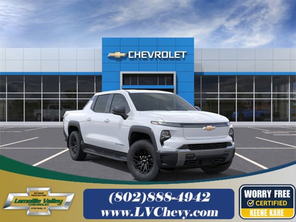 Lamoille Valley Chevrolet is proud to present you with another True Market Priced Vehicle. This 2026 Chevrolet Silverado EV LT is loaded with the following Factory Options: Front License Plate Bracket Mounting Package, Preferred Equipment Group 3LT (Extended Range Battery Pack, Front Passenger 4-Way Manual Seat Adjuster, and LED Reflective Windshield Collision Alert), 4-Wheel Disc Brakes, 4-Wheel Independent Suspension, 6 Speakers, 6-Speaker Audio System Feature, 8-Way Power Driver Seat Adjuster, ABS brakes, Air Conditioning, Alloy wheels, AM/FM radio: SiriusXM with 360L, Auto High-beam Headlights, Auto-dimming Rear-View mirror, Automatic temperature control, Axle Ratio: TBD, Black Chevytec Spray-On Bedliner, Brake assist, Delay-off headlights, Driver 2-Way Power Lumbar Seat Adjuster, Driver door bin, Driver vanity mirror, Dual front impact airbags, Dual front side impact airbags, Electronic Stability Control, Emergency communication system: OnStar, Evotex Seat Trim, Four wheel independent suspension, Front & Rear Molded Black Splash Guards (LPO), Front anti-roll bar, Front Bucket Seats, Front Center Armrest w/Storage, Front dual zone A/C, Front reading lights, Fully automatic headlights, Garage door transmitter, Heated door mirrors, Heated Front Driver & Passenger Seats, Heated front seats, Heated steering wheel, Low tire pressure warning, Navigation System, Occupant sensing airbag, Outside temperature display, Overhead airbag, Overhead console, Panic alarm, Passenger door bin, Passenger vanity mirror, Power door mirrors, Power driver seat, Power steering, Power windows, Radio data system, Radio: 17.7 Diagonal Advanced Color LCD Display, Rain sensing wipers, Rear reading lights, Rear step bumper, Rear window defroster, Remote keyless entry, Security system, SiriusXM w/360L Trial Subscription, Speed control, Speed-sensing steering, Split folding rear seat, Sport steering wheel, Steering wheel mounted audio controls, Telescoping steering wheel, Tilt steering wheel, Traction control, Trip computer, Variably intermittent wipers, and Wheels: 18 x 8.5 High Gloss Black Painted Alum!!