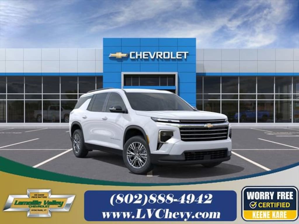 Lamoille Valley Chevrolet is proud to present you with another True Market Priced Vehicle. This 2026 Chevrolet Traverse LT 2LT is loaded with the following Factory Options: AWD Preferred Equipment Group 2LT, AWD, 3rd row seats: split-bench, 4-Way Manual Front Passenger Seat Adjuster, 4-Wheel Disc Brakes, 6 Speakers, 6-Speaker Audio System Feature, 8-Passenger Seating (2-3-3 Seating Configuration), 8-Way Power Driver Seat Adjuster, ABS brakes, Air Conditioning, Alloy wheels, AM/FM radio: SiriusXM with 360L, Apple CarPlay/Android Auto, Auto High-beam Headlights, Automatic temperature control, Brake assist, Bumpers: body-color, Child-Seat-Sensing Airbag, Compass, Delay-off headlights, Driver door bin, Driver vanity mirror, Dual front impact airbags, Dual front side impact airbags, Electronic Stability Control, Emergency communication system: OnStar, Four wheel independent suspension, Front anti-roll bar, Front Bucket Seats, Front Center Armrest, Front dual zone A/C, Front reading lights, Fully automatic headlights, Heated door mirrors, Heated Driver and Front Passenger Seats, Heated front seats, Heated steering wheel, Illuminated entry, Low tire pressure warning, Molded Splash Guards, Navigation System, Occupant sensing airbag, Outside temperature display, Overhead airbag, Overhead console, Panic alarm, Passenger door bin, Passenger vanity mirror, Power door mirrors, Power driver seat, Power Liftgate, Power steering, Power windows, Premium Cloth Seat Trim, Radio data system, Radio: : Audio System w/17.7 Diagonal Display, Rear air conditioning, Rear anti-roll bar, Rear reading lights, Rear window defroster, Rear window wiper, Remote keyless entry, Security system, SiriusXM with 360L Trial Subscription, Speed control, Speed-sensing steering, Spoiler, Steering wheel mounted audio controls, Tachometer, Telescoping steering wheel, Tilt steering wheel, Traction control, Trip computer, Turn signal indicator mirrors, Variably intermittent wipers, Voltmeter, and Wheels: 18 Grazen Metallic Machined-Face Aluminum!!