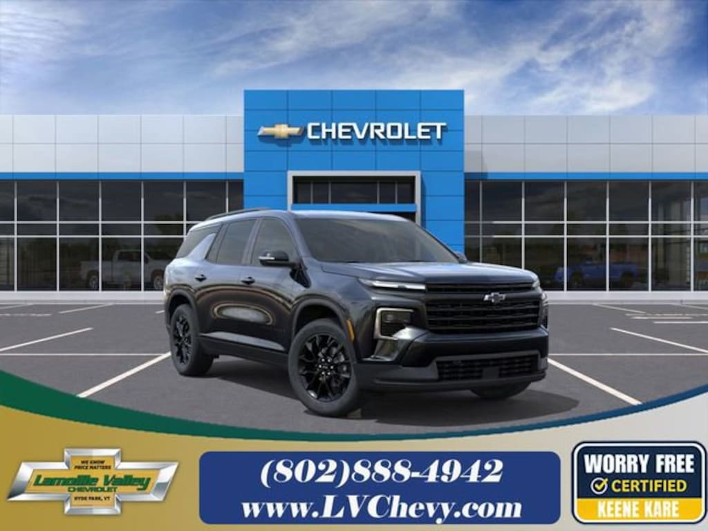 Lamoille Valley Chevrolet is proud to present you with another True Market Priced Vehicle. This 2026 Chevrolet Traverse LT 2LT is loaded with the following Factory Options: AWD Driver Confidence Package (HD Surround Vision, Key Card, Power Outlet, Rear Camera Mirror, Rear Pedestrian Alert, and Traffic Sign Recognition), Floor Liner Package (1st and 2nd Row All-Weather Floor Liners, 3rd Row All-Weather Floor Liner, and Integrated Cargo Liner), Midnight/Sport Edition (High Gloss Black Door Upper Molding and Wheels: 20 High Gloss Black Painted Aluminum), Preferred Equipment Group 2LT, AWD, 3rd row seats: split-bench, 4-Way Manual Front Passenger Seat Adjuster, 4-Wheel Disc Brakes, 6 Speakers, 6-Speaker Audio System Feature, 8-Way Power Driver Seat Adjuster, ABS brakes, Air Conditioning, Alloy wheels, AM/FM radio: SiriusXM with 360L, Apple CarPlay/Android Auto, Auto High-beam Headlights, Automatic temperature control, Brake assist, Bumpers: body-color, Child-Seat-Sensing Airbag, Compass, Delay-off headlights, Driver door bin, Driver vanity mirror, Dual front impact airbags, Dual front side impact airbags, Electronic Stability Control, Emergency communication system: OnStar, Four wheel independent suspension, Front anti-roll bar, Front Bucket Seats, Front Center Armrest, Front dual zone A/C, Front reading lights, Fully automatic headlights, Heated door mirrors, Heated Driver and Front Passenger Seats, Heated front seats, Heated steering wheel, Illuminated entry, Low tire pressure warning, Molded Splash Guards, Navigation System, Occupant sensing airbag, Outside temperature display, Overhead airbag, Overhead console, Panic alarm, Passenger door bin, Passenger vanity mirror, Power door mirrors, Power driver seat, Power Liftgate, Power steering, Power windows, Premium Cloth Seat Trim, Radio data system, Radio: : Audio System w/17.7 Diagonal Display, Rear air conditioning, Rear anti-roll bar, Rear reading lights, Rear window defroster, Rear window wiper, Remote keyless entry, Security system, SiriusXM with 360L Trial Subscription, Speed control, Speed-sensing steering, Spoiler, Steering wheel mounted audio controls, Tachometer, Telescoping steering wheel, Tilt steering wheel, Traction control, Trip computer, Turn signal indicator mirrors, Variably intermittent wipers, Voltmeter, and Wheels: 18 Grazen Metallic Machined-Face Aluminum!!