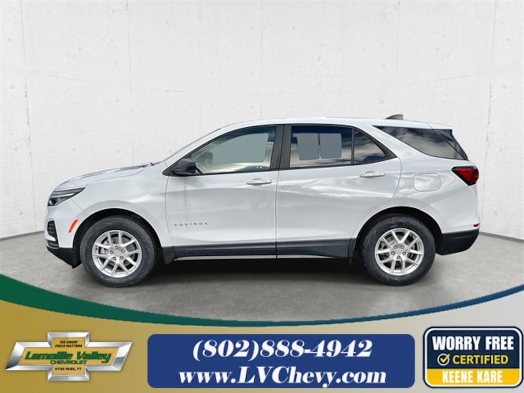 Lamoille Valley Chevrolet is proud to present you with another True Market Priced Pre-Owned Vehicle. This 2022 Chevrolet Equinox LS is loaded with the following Factory Options: AWD LS Convenience Package (2-Way Power Driver Lumbar Control Seat Adjuster, 8-Way Power Driver Seat Adjuster, Deep-Tinted Rear Glass, and Multi-Color Enhanced Driver Instrument Info Display), Preferred Equipment Group 1LS, AWD, 17" Aluminum Wheels, 2 Rear USB Charging-Only Ports, 2 USB Ports & Auxiliary Input Jack, 3.87 Final Drive Axle Ratio, 4-Way Manual Driver Seat Adjuster, 4-Wheel Disc Brakes, 6 Speaker Audio System Feature, 6 Speakers, ABS brakes, Air Conditioning, Alloy wheels, AM/FM radio: SiriusXM, Auto High-beam Headlights, Bluetooth® For Phone, Brake assist, Bumpers: body-color, Compass, Delay-off headlights, Driver door bin, Driver vanity mirror, Dual front impact airbags, Dual front side impact airbags, Electronic Stability Control, Emergency communication system: OnStar and Chevrolet connected services capable, Four wheel independent suspension, Front anti-roll bar, Front Bucket Seats, Front Center Armrest, Front Passenger 4-Way Manual Seat Adjuster, Front reading lights, Fully automatic headlights, Heated door mirrors, Illuminated entry, Low tire pressure warning, Occupant sensing airbag, Outside temperature display, Overhead airbag, Overhead console, Panic alarm, Passenger door bin, Passenger vanity mirror, Power door mirrors, Power steering, Power windows, Premium audio system: Chevrolet Infotainment 3, Premium Cloth Seat Trim, Radio data system, Radio: Chevrolet Infotainment 3 System w/AM/FM, Rear anti-roll bar, Rear reading lights, Rear seat center armrest, Rear window defroster, Rear window wiper, Remote keyless entry, Security system, SiriusXM Radio, Speed control, Speed-sensing steering, Split folding rear seat, Spoiler, Steering wheel mounted audio controls, Tachometer, Telescoping steering wheel, Tilt steering wheel, Traction control, Trip computer, Variably intermittent wipers, and Wireless Apple CarPlay/Wireless Android Auto!!