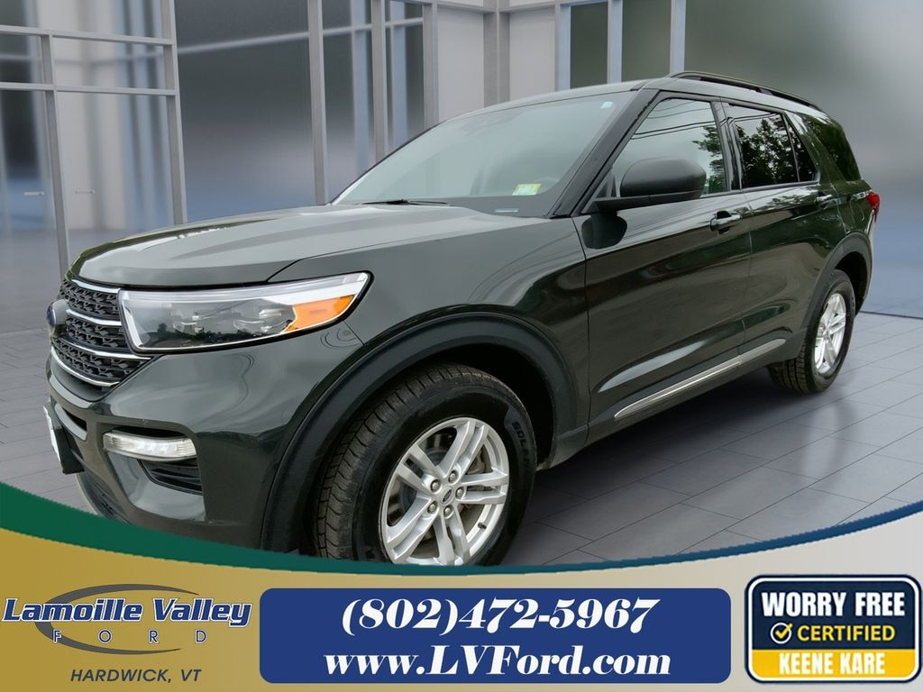 Lamoille Valley Ford is proud to present you with another True Market Priced Pre-Owned Vehicle. This 2022 Ford Explorer XLT Ford Gold Certified is loaded with the following Factory Options: 4WD Class IV Trailer Tow Package, Equipment Group 202A (1st Row Heated Seats, Acoustic-Laminated Front Side Windows, ActiveX Captain's Chairs, Heated Steering Wheel, LED Fog Lamps, Remote Start System, and SecuriCode Keyless Entry Keypad), Ford Gold Certified Certified, 4WD, 3.58 Non-Limited-Slip Rear Axle Ratio, 3rd row seats: bench, 4-Wheel Disc Brakes, 6 Speakers, ABS brakes, Air Conditioning, Alloy wheels, AM/FM radio: SiriusXM, AM/FM Stereo, Auto High-beam Headlights, Auto Start-Stop Removal, Automatic temperature control, Brake assist, Bumpers: body-color, Compass, Delay-off headlights, Driver door bin, Driver vanity mirror, Dual front impact airbags, Dual front side impact airbags, Electronic Stability Control, Emergency communication system: SYNC 3 911 Assist, Exterior Parking Camera Rear, FordPass Connect, Four wheel independent suspension, Front anti-roll bar, Front Bucket Seats, Front Center Armrest, Front dual zone A/C, Front reading lights, Fully automatic headlights, Heated door mirrors, Heated front seats, Illuminated entry, Knee airbag, Leather steering wheel, Low tire pressure warning, Occupant sensing airbag, Outside temperature display, Overhead airbag, Overhead console, Panic alarm, Passenger door bin, Passenger vanity mirror, Power door mirrors, Power driver seat, Power Liftgate, Power passenger seat, Power steering, Power windows, Rear air conditioning, Rear anti-roll bar, Rear Auxiliary Controls Credit, Rear reading lights, Rear window defroster, Rear window wiper, Remote keyless entry, Roof rack: rails only, Security system, Speed control, Speed-sensing steering, Speed-Sensitive Wipers, Split folding rear seat, Spoiler, Steering wheel mounted audio controls, SYNC 3 Communications & Entertainment System, SYNC 3/Apple CarPlay/Android Auto, Tachometer, Telescoping steering wheel, Tilt steering wheel, Traction control, Trip computer, Unique Cloth Captain's Chairs, Variably intermittent wipers, and Wheels: 18" 5-Spoke Silver-Painted Aluminum!!