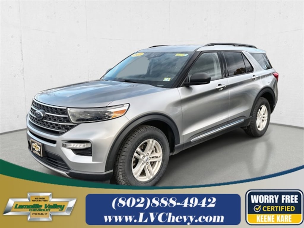 Lamoille Valley Chevrolet is proud to present you with another True Market Priced Pre-Owned Vehicle. This 2022 Ford Explorer XLT is loaded with the following Factory Options: 4WD Equipment Group 202A (1st Row Heated Seats, Acoustic-Laminated Front Side Windows, ActiveX Captain's Chairs, Heated Steering Wheel, LED Fog Lamps, Remote Start System, and SecuriCode Keyless Entry Keypad), 4WD, 2nd Row 35/30/35 Bench w/E-Z Entry & Armrest, 3.58 Non-Limited-Slip Rear Axle Ratio, 3rd row seats: bench, 4-Wheel Disc Brakes, 4G LTE Wi-Fi Hotspot Removal Credit, 6 Speakers, ABS brakes, Air Conditioning, Alloy wheels, AM/FM radio: SiriusXM, AM/FM Stereo, Auto High-beam Headlights, Auto Start-Stop Removal, Automatic temperature control, Brake assist, Bumpers: body-color, Compass, Delay-off headlights, Driver door bin, Driver vanity mirror, Dual front impact airbags, Dual front side impact airbags, Electronic Stability Control, Emergency communication system: SYNC 3 911 Assist, Exterior Parking Camera Rear, FordPass Connect, Four wheel independent suspension, Front anti-roll bar, Front Bucket Seats, Front Center Armrest, Front dual zone A/C, Front reading lights, Fully automatic headlights, Heated door mirrors, Heated front seats, Illuminated entry, Knee airbag, Leather steering wheel, Low tire pressure warning, Occupant sensing airbag, Outside temperature display, Overhead airbag, Overhead console, Panic alarm, Passenger door bin, Passenger vanity mirror, Power door mirrors, Power driver seat, Power Liftgate, Power passenger seat, Power steering, Power windows, Rear air conditioning, Rear anti-roll bar, Rear Auxiliary Controls Credit, Rear reading lights, Rear window defroster, Rear window wiper, Remote keyless entry, Roof rack: rails only, Security system, Speed control, Speed-sensing steering, Speed-Sensitive Wipers, Split folding rear seat, Spoiler, Steering wheel mounted audio controls, SYNC 3 Communications & Entertainment System, SYNC 3/Apple CarPlay/Android Auto, Tachometer, Telescoping steering wheel, Tilt steering wheel, Traction control, Trip computer, Unique Cloth Captain's Chairs, Variably intermittent wipers, and Wheels: 18" 5-Spoke Silver-Painted Aluminum!!