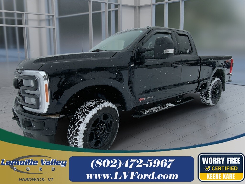 Lamoille Valley Ford is proud to present you with another True Market Priced Pre-Owned Vehicle. This 2023 Ford F-350SD XLT is loaded with the following Factory Options: 4WD 360-Degree Camera Package, FX4 Off-Road Package, Order Code 613A, Snow Plow Prep Package, Sport Appearance Package (LED Box Lighting, Platform Running Boards, and Wheels: 18" Ebony Black Painted Aluminum), XLT Premium Package (PowerScope Trailer Tow Mirrors w/Heat, Radio: B&O Sound System by Bang & Olufsen, and Remote Start System), 4WD, 190 Amp Alternator, 4-Wheel Disc Brakes, 410 Amp Dual Alternators, 7 Speakers, ABS brakes, Air Conditioning, Alloy wheels, AM/FM radio, Auto High-beam Headlights, Auto-dimming Rear-View mirror, Brake assist, Bumpers: chrome, Cloth 40/20/40 Split Bench Seat, Compass, Delay-off headlights, Driver door bin, Driver vanity mirror, Dual 68 AH/65 AGM Batteries, Dual front impact airbags, Dual front side impact airbags, Electronic Stability Control, Emergency communication system: SYNC 4 911 Assist, Engine Block Heater, Exterior Parking Camera Rear, Fixed Rear-Window w/Defrost, Front anti-roll bar, Front Center Armrest w/Storage, Front fog lights, Front License Plate Bracket, Front reading lights, Fully automatic headlights, Heated door mirrors, Illuminated entry, LED Roof Clearance Lights, Low tire pressure warning, Outside temperature display, Overhead airbag, Overhead console, Panic alarm, Passenger cancellable airbag, Passenger door bin, Passenger vanity mirror, Power door mirrors, Power driver seat, Power steering, Power windows, Privacy Glass, Radio: AM/FM Stereo/MP3 Player, Rear step bumper, Remote keyless entry, Speed control, Split folding rear seat, Steering wheel mounted audio controls, SYNC 4, Tachometer, Telescoping steering wheel, Tilt steering wheel, Traction control, Trip computer, Turn signal indicator mirrors, Upfitter Switches (6), Variably intermittent wipers, and Wheels: 18" Sparkle Silver Painted Cast Aluminum!!