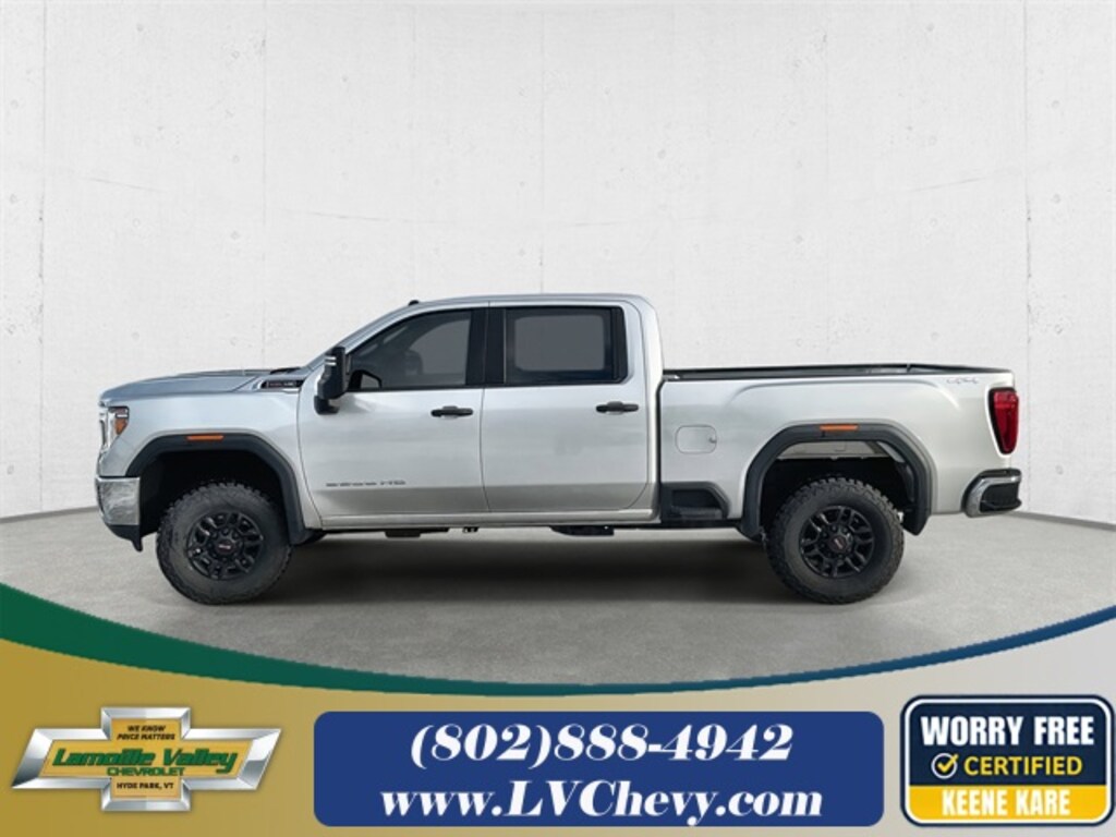 Lamoille Valley Chevrolet is proud to present you with another True Market Priced Pre-Owned Vehicle. This 2023 GMC Sierra 2500HD Pro is loaded with the following Factory Options: 6-Speed Automatic, 4WD, and Black Cloth Convenience Package (Deep-Tinted Glass, Electric Rear-Window Defogger, EZ Lift Power Lock & Release Tailgate, LED Cargo Area Lighting, Outside Power-Adjustable Black Mirrors, Remote Keyless Entry, and Steering Wheel-Mounted Cruise Control), Preferred Equipment Group 1SA (2-Speed Electronic Shift Transfer Case, Chrome Surround Grille w/Black Mesh, Power Rear Windows w/Express Down, and Solar Absorbing Glass), Snow Plow Prep/Camper Package (220 Amps Alternator), Suspension Package, 6-Speed Automatic, 4WD, Black Cloth, 17" Machined Aluminum Wheels, 17" Steel Wheels, 3.73 Rear Axle Ratio, 4-Way Manual Driver Seat Adjuster, 4-Way Manual Passenger Seat Adjuster, 4-Wheel Disc Brakes, 6 Speakers, 6-Speaker Audio System Feature, ABS brakes, Air Conditioning, AM/FM radio, Apple CarPlay/Android Auto, Auto-Dimming Inside Rear-View Mirror, Brake assist, Bumpers: chrome, Delay-off headlights, Driver door bin, Dual front impact airbags, Dual front side impact airbags, Electronic Stability Control, Exterior Parking Camera Rear, Front 40/20/40 Split-Bench Seats, Front anti-roll bar, Front Center Armrest w/Storage, Front License Plate Kit, Front reading lights, Front wheel independent suspension, Fully automatic headlights, Heavy-Duty 80 Amp Battery, Integrated Trailer Brake Controller, LED Smoked Amber Roof Marker Lamps, Low tire pressure warning, Occupant sensing airbag, Outside Pwr-Adjustable Vertical Trailering Mirrors, Outside temperature display, Overhead airbag, Overhead console, Passenger door bin, Passenger vanity mirror, Perimeter Lighting, Pickup Box, Power steering, Power windows, Premium audio system: GMC Infotainment System, Radio: AM/FM w/GMC Infotainment System, Rear reading lights, Rear step bumper, Split folding rear seat, Tachometer, Tilt steering wheel, Traction control, Trip computer, Variably intermittent wipers, Vinyl Seat Trim, and Voltmeter!!